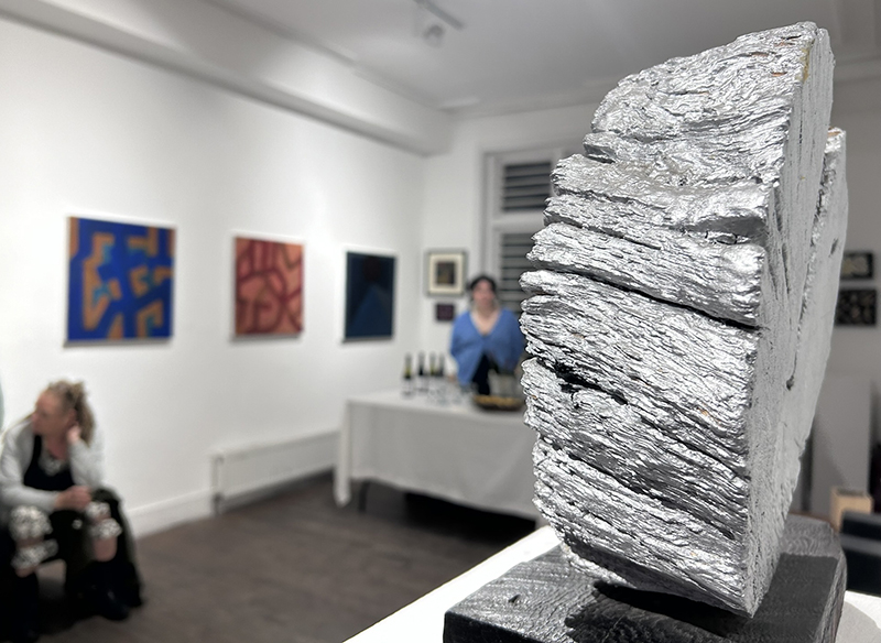 paintings are mainly abstractions, some figurative pieces, sculpture, and