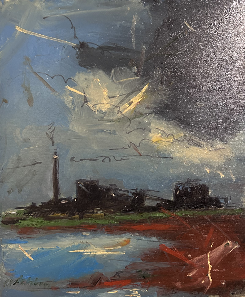 1 Walking down to Sennen Cove Oil on Canvas 102 x 153cm £2,5002 Dawson’s Heights Oil on Canvas 123x 93cm £1,8703 Chinooks over Dawson’s Heights Oil on Panel 122 x 91cm £1,8704 Here comes the Summer Oil on Canvas 76 x 61cm £8005 Bosham Harbour Oil on Canvas 76 x 61cm £8006 Corvid Country Oil on Canvas 76 x 61cm £8007 Garden Birds Oil on Canvas 76 x 61cm £8009 Sunset over Dawson’s Heights Oil on Canvas 50x 60cm £540 SOLD10 St Peter’s Church Lordship Lane Oil On Canvas 51 x 38cm £36011 Dawson’s Heights at Sunset Oil on Canvas 40 x 50cm £360 SOLD12 On Cresswell Beach Oil on Canvas 51 x 41cm £36013 Weather 1 Oil on Board 53 x 43cm £36014 Weather 2 Oil on Board 53 x 43cm £36015 Weather 3 Oil on Board 53 x 43cm £36016 F35 Over London Oil on Canvas 123 x 92cm £1,87017 The Magnificent Man Oil on Canvas 122 x 76cm £1,56618 Dawson’s Heights Oil on Canvas 51 x41cm £36019 Neil and Buzz take a trip Oil on Panel 43 x 61cm £42620 Birds over Thames Estuary Oil on Panel 38 x 48cm £29721 Dawson’s Heights Oil on Board 40 x 30cm £29722 Entrance to Camberwell Old Cemetery Oil on Board 40 x 30cm £29723 Dawson’s Heights from Forest Hill Oil on Canvas 46 x 36cm £30024 Lynemouth Power Station Oil on Canvas 41 x41cm £30025 Chinook on Manoeuvres Oil on Panel 31 x 26cm £240 SOLD26 Sunset over Portsdown Hill Oil on Panel 31 x 26cm £240 SOLD27 Remembering Farlington Marshes Oil On Panel 30 x 26cm £24028 Birds Over Landfill Oil on Panel 36 x 20cm £20029 ICBM Over Norfolk Oil on Panel 31 x 26cm £24030 Chinooks in a Landscape Oil on Panel 31 x 26cm £24031 Lunar Module Oil on Panel 35 x31 cm £210 SOLD32 Structure of unknown function near Dru Ridge Pools Oil on Panel 25 x 30cm £15533 Lynemouth Power Station Oil on Panel 25 x 30cm £155 SOLD34 This Furrowed Land Oil on Canvas 31 x 31cm £18335 Garden at Ringmore Rise Oil on Panel 29 x 32cm £156 SOLD36 Sennen Oil on Panel 26 x 30cm £162 SOLD37 Anti Tank Defense on Cresswell Beach Oil on Panel 29 x 32cm £156 SOLD38 Dawson’s Heights Oil on Canvas 100 x 100cm £1,738