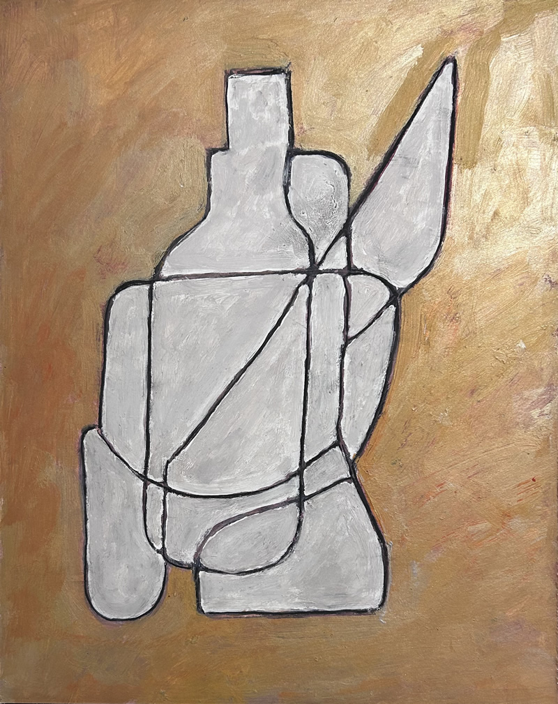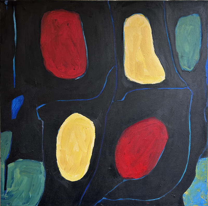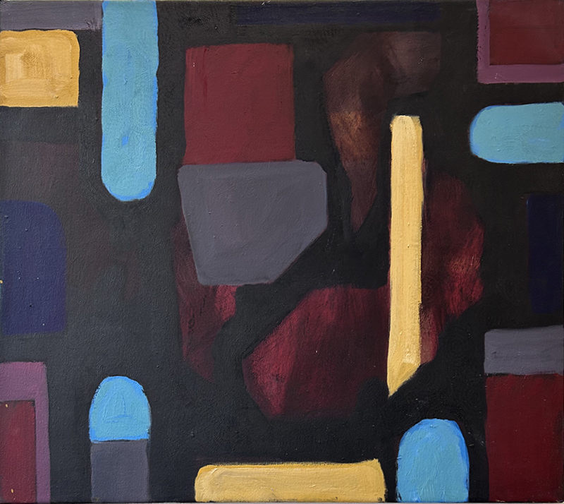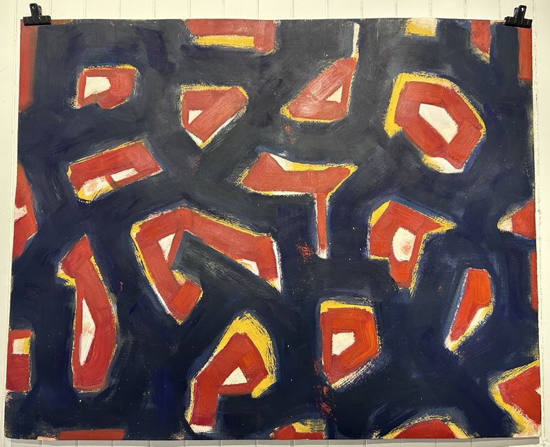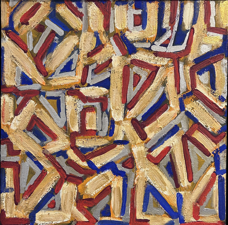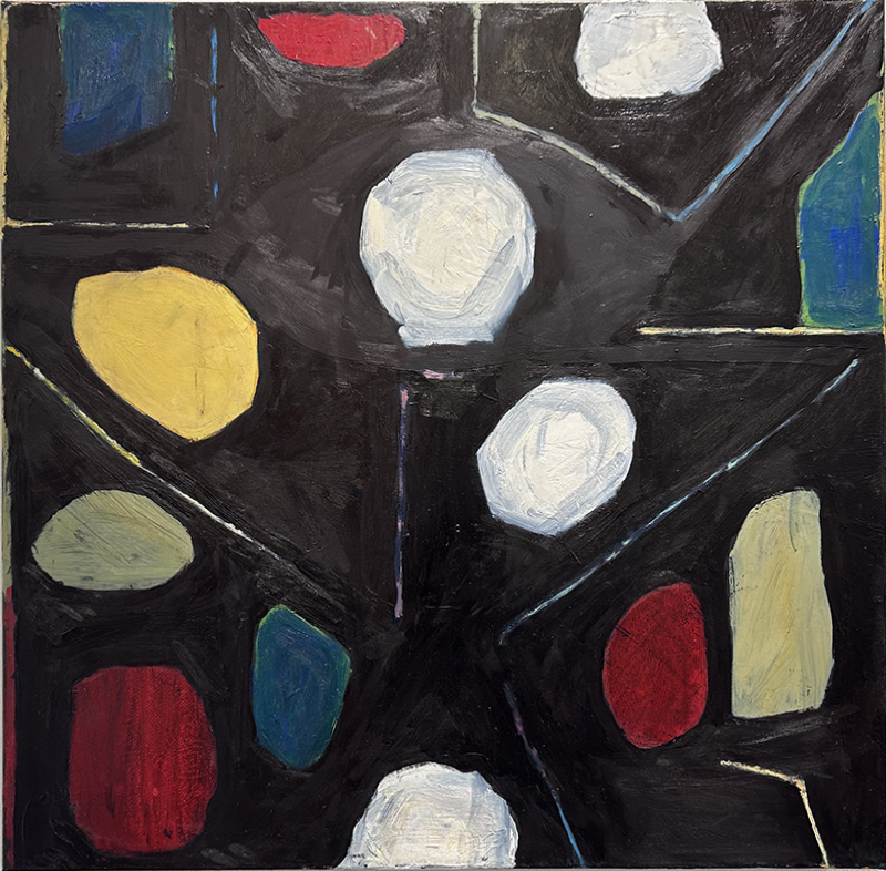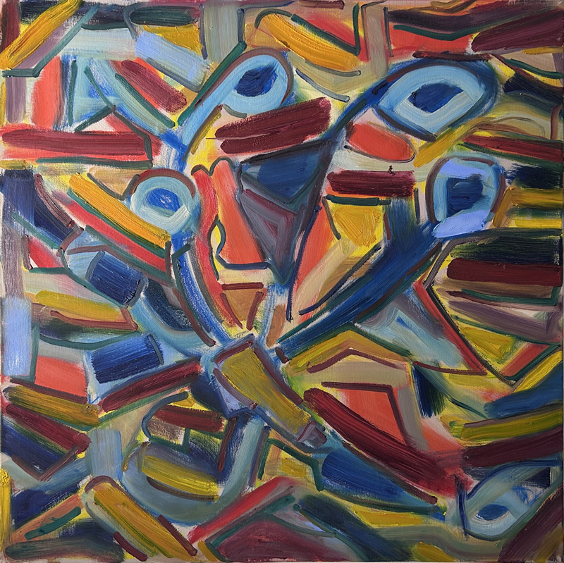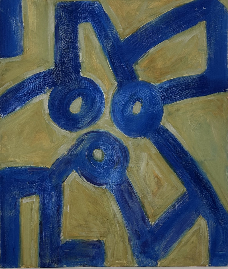 1. Untitled 2023, Oil on canvas. 60x70cm. (In Window) £2,2502. Syncopation 2025, Oil on canvas. 90x90cm. £3,2503. Blue Silence 2025, Gouache on canvas board.45x45cm. £9504. Silver Forms Over Gold 2026, Gouache on canvas board. 45x45cm. £9505. Dancing in the Dark 2026, Oil on canvas.90x90cm. £3,2506. Floating Forms 2019, Oil on heavyweight paper.122x152cm (From a Series of 14) POA7. Floating Forms II 2026, Oil on canvas. 90x90cm. £3,2508. Rhythms in Red 2025, Oil on canvas. 84x94cm £3,5009. Into the Darkness 2025, Oil on canvas. 90x90cm. £3,25010. Stairway to Heaven 2025, Oil on canvas. 90x90cm. £3,25011. Blue over Orange 1999, 2025, Oil on canvas. 162x180cm POA12. Distortion 2025, Oil on canvas & metal paint.90x90cm. £3,25013. Blue Connections 2024, Oil on canvas. 70x60cm. £ 95014. Untitled 2025, Gouache on heavy card. 56x46cm. £ 95015. Modulation I 2026, Gouache on canvas. 23x23cm. £ 35016. Modulation II 2026, Gouache on canvas. 23x23cm. £ 35017. After Tàpies 2025, Oil on torn hessian. 26x38cm. £ 85018. Syncopation II 2025, Gouache on heavy card. 45x45cm. £1,20019. Gold, Silver & Blue 2025, Gouache on board. 40x54cm. £1,20020. Dancers III 2023, Oil on canvas. 60x60cm. £125021. Dancers 2022, Oil & cellulose paint on canvas. 63x84cm. £2,00022. Death in Gaza 2023, Oil on canvas. 80x129cm. POA23. Heathlands 1999, Oil on canvas. 220x183cm. POA24. Fixed Point in Blue 1999, Oil on canvas. 250x140cm. POA25. Moving Rhythm I 2016, Oil on canvas. 92x92cm. £3,00026. Moving Rhythm II 2016, Oil on canvas. 80x160cm (In window) £2,500 Left: 27. Untitled 2008, Sculpted and painted found timber. 46x24x19cm £1,250 Right: 28. Untitled 2009, Sculpted and waxed found timber 72x23x15cm £1,500 Click to enlarge29. Bodily II 2024, Gouache on board. 70x54cm. (Displayed on large easel) £1,50030. Untitled 2025. Collage 52x44cm (Displayed on small easel) £ 650 31. Untitled 2025. Collage 52x44cm (Displayed on small easel) £ 650 Click to enlargeBonus: POA