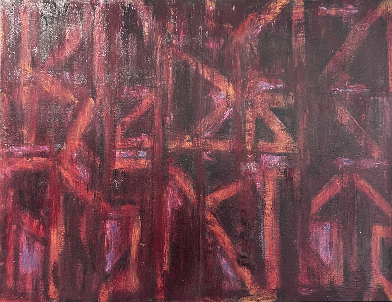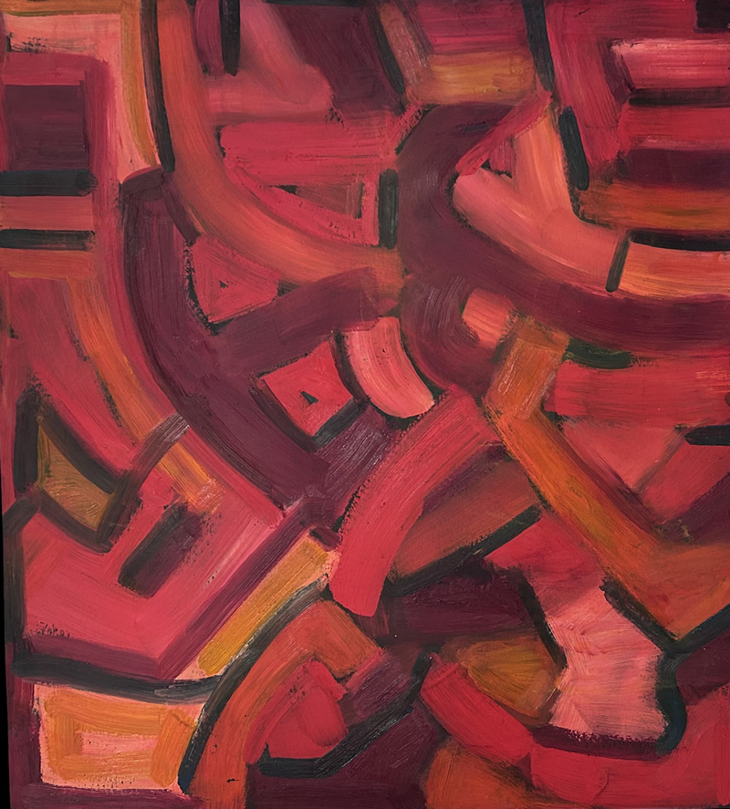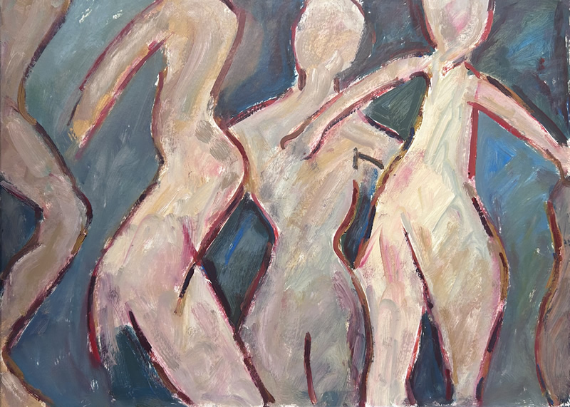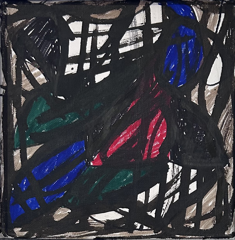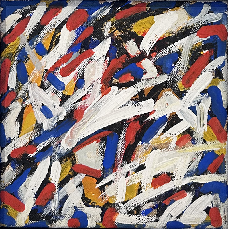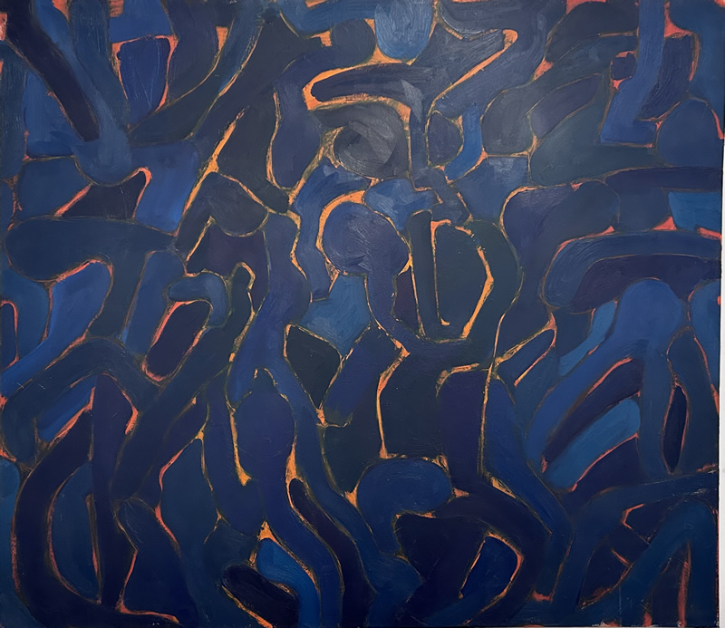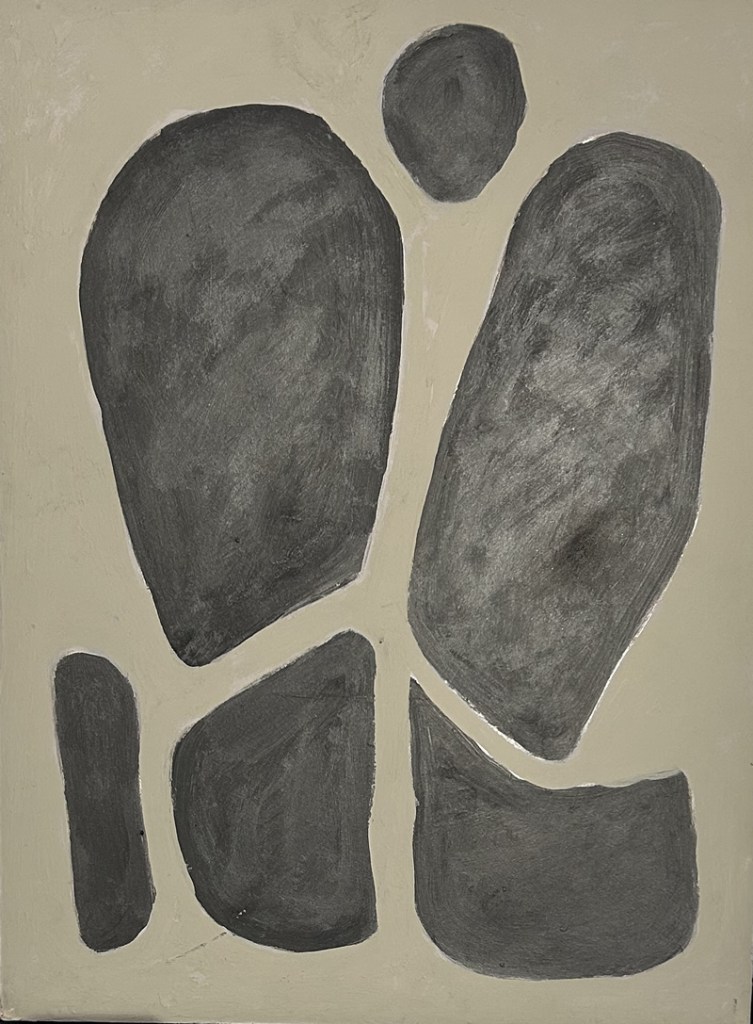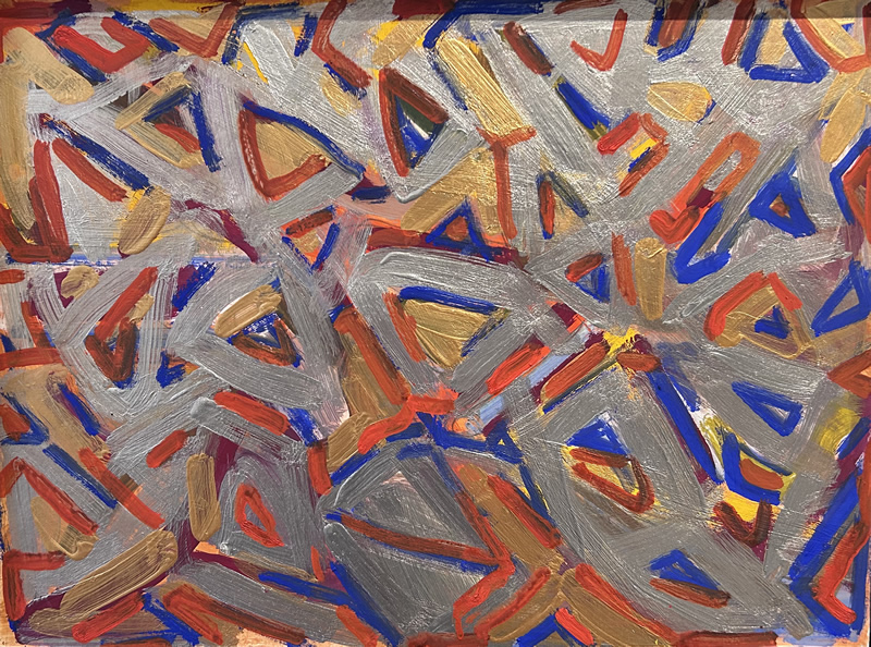 1. Untitled 2023, Oil on canvas. 60x70cm. (In Window) £2,2502. Syncopation 2025, Oil on canvas. 90x90cm. £3,2503. Blue Silence 2025, Gouache on canvas board.45x45cm. £9504. Silver Forms Over Gold 2026, Gouache on canvas board. 45x45cm. £9505. Dancing in the Dark 2026, Oil on canvas.90x90cm. £3,2506. Floating Forms 2019, Oil on heavyweight paper.122x152cm (From a Series of 14) POA7. Floating Forms II 2026, Oil on canvas. 90x90cm. £3,2508. Rhythms in Red 2025, Oil on canvas. 84x94cm £3,5009. Into the Darkness 2025, Oil on canvas. 90x90cm. £3,25010. Stairway to Heaven 2025, Oil on canvas. 90x90cm. £3,25011. Blue over Orange 1999, 2025, Oil on canvas. 162x180cm POA12. Distortion 2025, Oil on canvas & metal paint.90x90cm. £3,25013. Blue Connections 2024, Oil on canvas. 70x60cm. £ 95014. Untitled 2025, Gouache on heavy card. 56x46cm. £ 95015. Modulation I 2026, Gouache on canvas. 23x23cm. £ 35016. Modulation II 2026, Gouache on canvas. 23x23cm. £ 35017. After Tàpies 2025, Oil on torn hessian. 26x38cm. £ 85018. Syncopation II 2025, Gouache on heavy card. 45x45cm. £1,20019. Gold, Silver & Blue 2025, Gouache on board. 40x54cm. £1,20020. Dancers III 2023, Oil on canvas. 60x60cm. £125021. Dancers 2022, Oil & cellulose paint on canvas. 63x84cm. £2,00022. Death in Gaza 2023, Oil on canvas. 80x129cm. POA23. Heathlands 1999, Oil on canvas. 220x183cm. POA24. Fixed Point in Blue 1999, Oil on canvas. 250x140cm. POA25. Moving Rhythm I 2016, Oil on canvas. 92x92cm. £3,00026. Moving Rhythm II 2016, Oil on canvas. 80x160cm (In window) £2,500 Left: 27. Untitled 2008, Sculpted and painted found timber. 46x24x19cm £1,250 Right: 28. Untitled 2009, Sculpted and waxed found timber 72x23x15cm £1,500 Click to enlarge29. Bodily II 2024, Gouache on board. 70x54cm. (Displayed on large easel) £1,50030. Untitled 2025. Collage 52x44cm (Displayed on small easel) £ 650 31. Untitled 2025. Collage 52x44cm (Displayed on small easel) £ 650 Click to enlargeBonus: POA